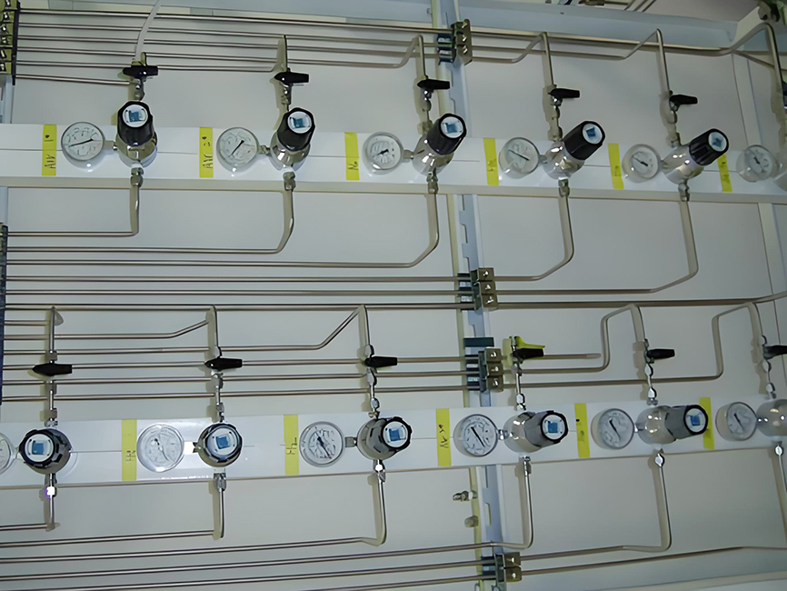 氣路指實驗室氣體工程,即從氣瓶至儀器終端之間連接管線,一般有氣體切換裝置-減壓裝置-閥門-管線-過濾器-報警器-終端箱-調(diào)節(jié)閥等部分組成。實驗室氣路系統(tǒng)的安裝是一項高度技術(shù)性的活動,要求具備專業(yè)的技術(shù)和深厚的知識。首先,氣路系統(tǒng)的設(shè)計必須合理,以確保實驗中的氣流能夠保持穩(wěn)定,并且各個部分的壓力能夠得到均衡。其次,管道的選擇和連接必須符合相關(guān)標(biāo)準(zhǔn),以保證整個系統(tǒng)的氣密性,從而防止不必要的泄漏和安全隱患。此外,還需充分考慮實驗室的具體需求,包括氣體的種類、流量和壓力等方面,以確保系統(tǒng)能夠滿足實驗的特定要求。